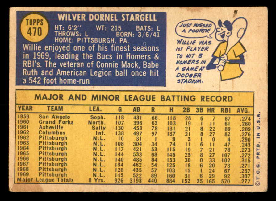1970 Topps Baseball #470 Willie Stargell Pirates FR-GD 541431
