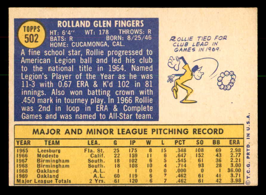1970 Topps Baseball #502 Rollie Fingers A's EX-MT 541394