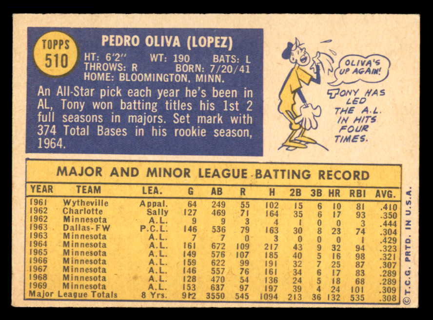 1970 Topps Baseball #510 Tony Oliva Twins EX-MT 546021
