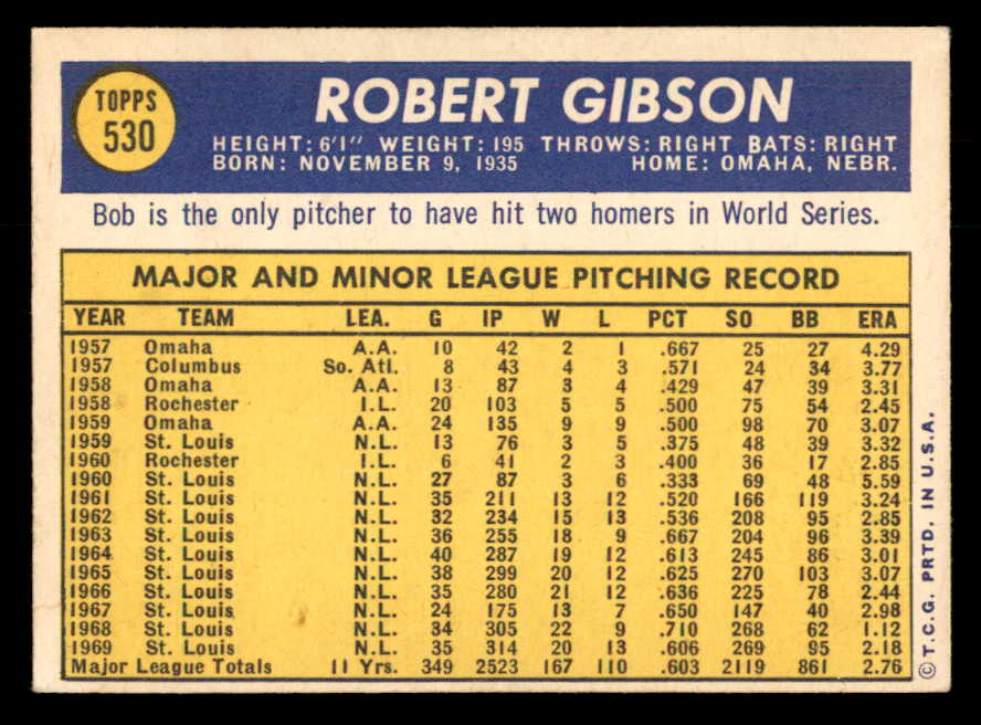 1970 Topps Baseball #530 Bob Gibson Cardinals EX+/EX-MT 541454