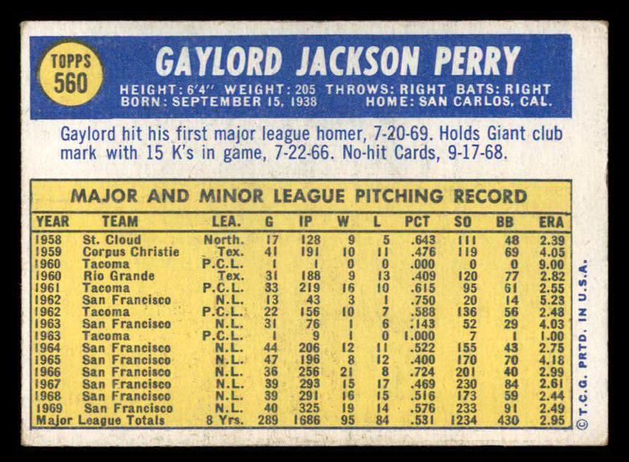 1970 Topps Baseball #560 Gaylord Perry Giants VG-EX 546029