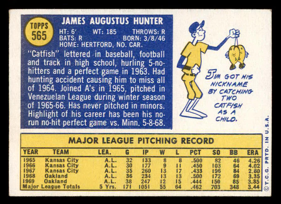 1970 Topps Baseball #565 Catfish Hunter A's EX+/EX-MT 546032