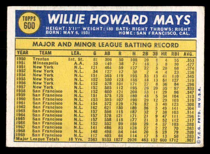 1970 Topps Baseball #600 Willie Mays Giants GD-VG 541445