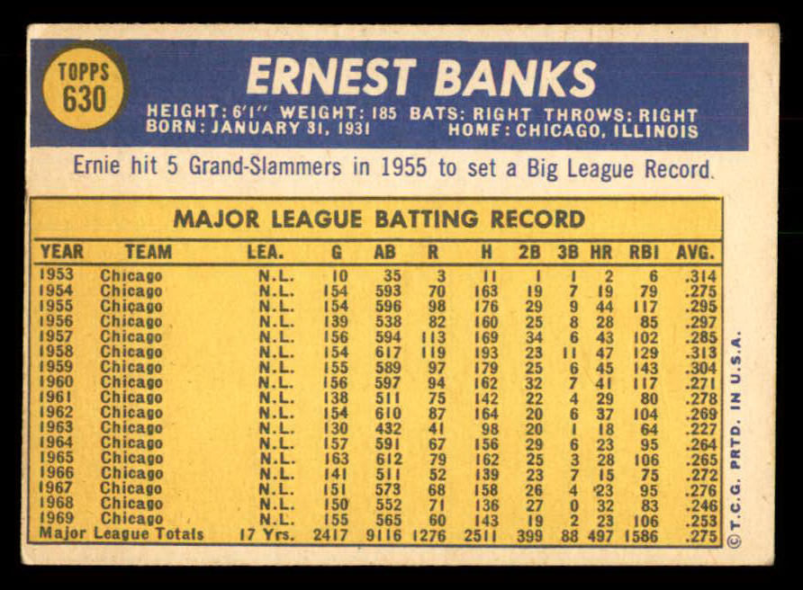 1970 Topps Baseball #630 Ernie Banks Cubs EX 541403