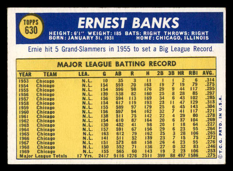 1970 Topps Baseball #630 Ernie Banks Cubs EX-MT 546008