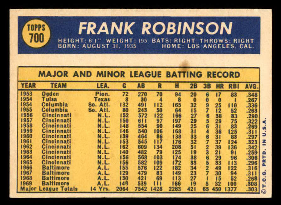1970 Topps Baseball #700 Frank Robinson Orioles VG-EX 546014
