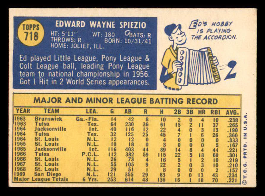 1970 Topps Baseball #718 Ed Spiezio Padres VG-EX/EX 543199