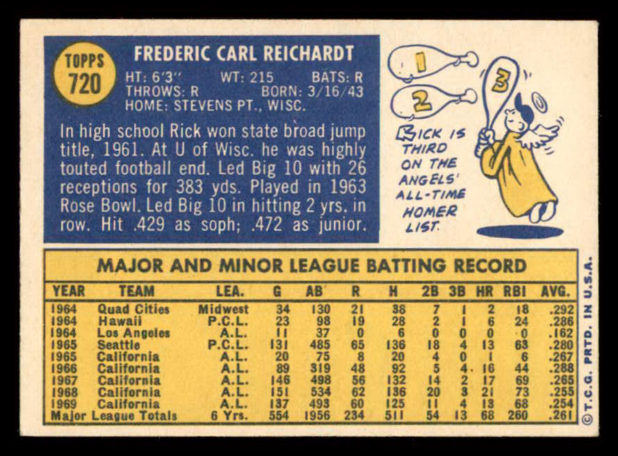 1970 Topps Baseball #720 Rick Reichardt Angels VG-EX/EX 543197