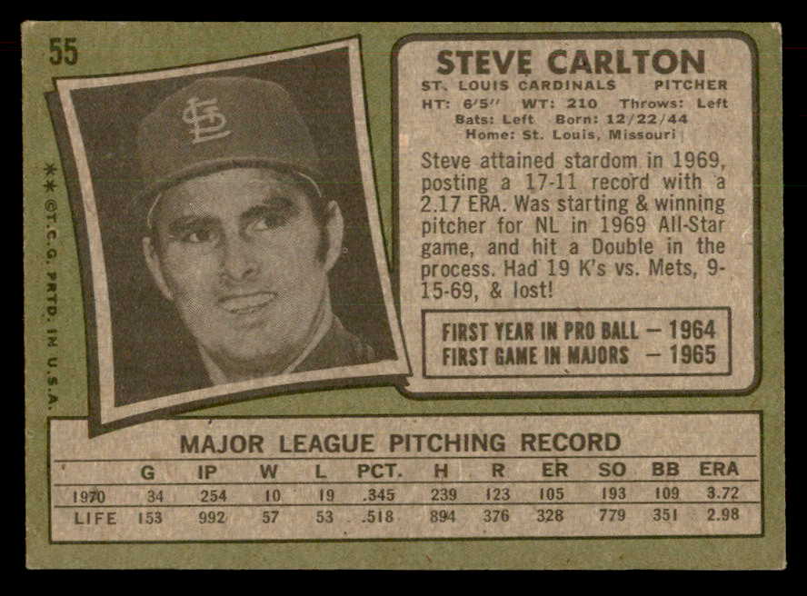 1971 Topps Baseball #055 Steve Carlton Cardinals EX 541687