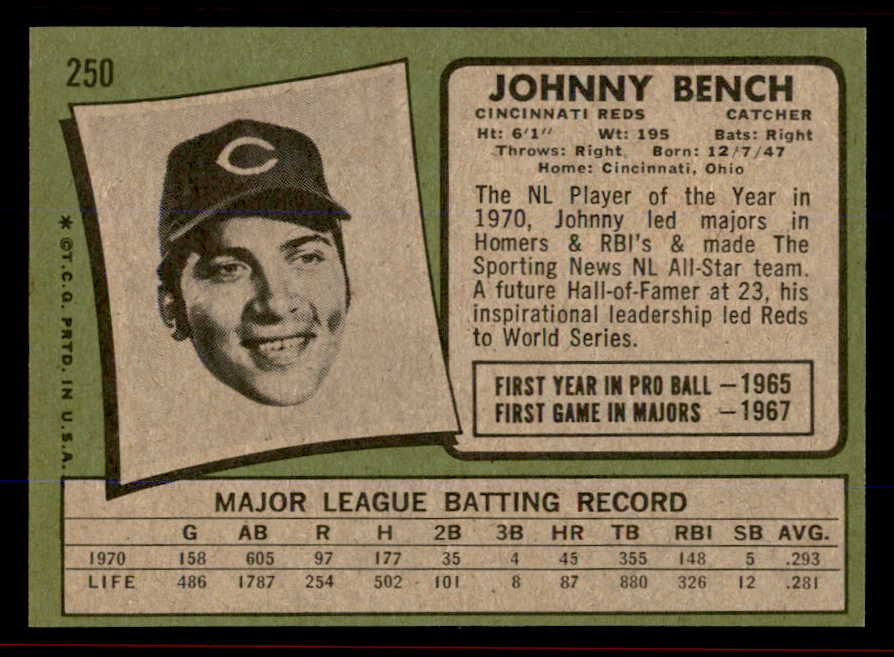 1971 Topps Baseball #250 Johnny Bench Reds EX-MT/NR-MT 545935