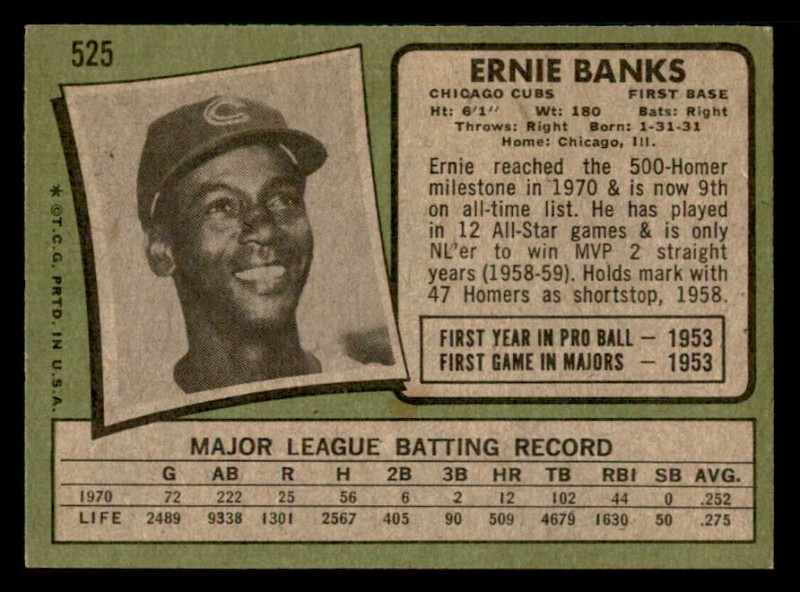 1971 Topps Baseball #525 Ernie Banks Cubs EX-MT 542411