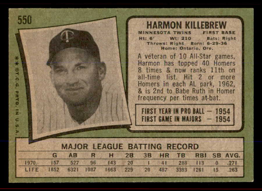 1971 Topps Baseball #550 Harmon Killebrew Twins EX-MT/NR-MT 545963