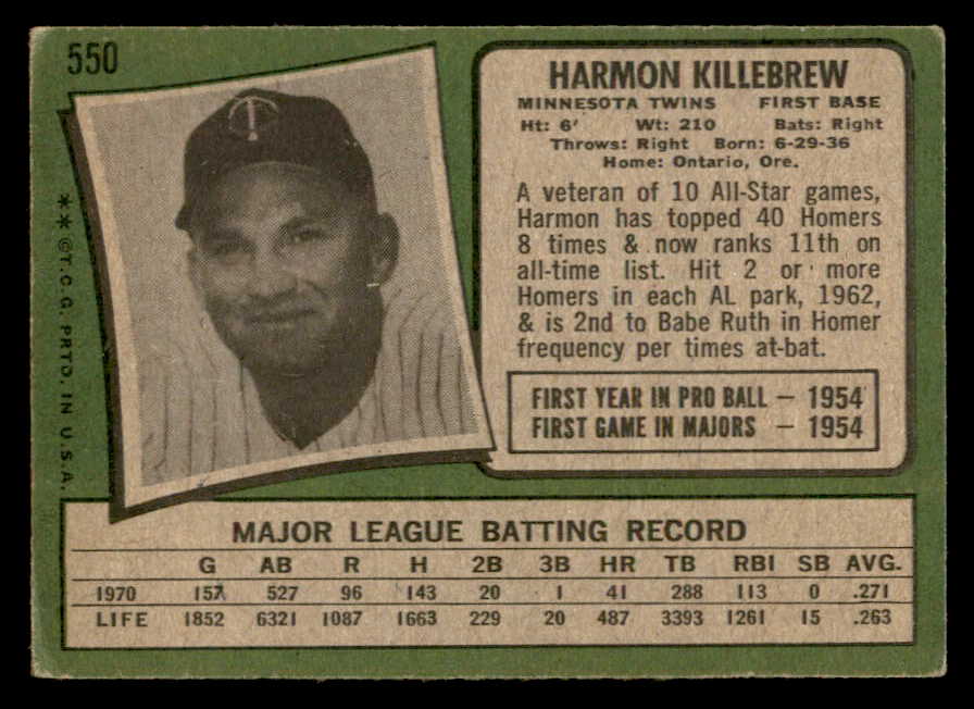 1971 Topps Baseball #550 Harmon Killebrew Twins VG-EX 546283
