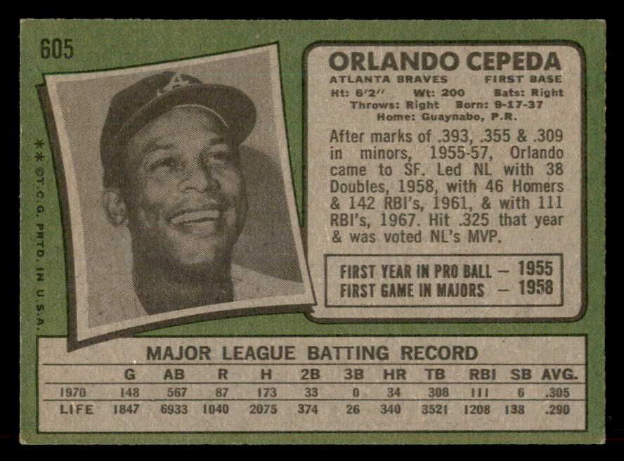 1971 Topps Baseball #605 Orlando Cepeda Braves EX 546759