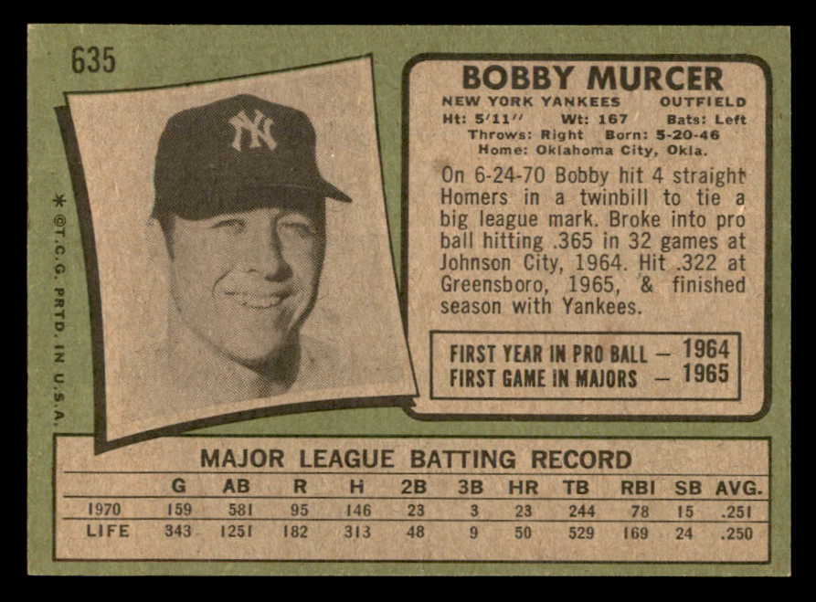 1971 Topps Baseball #635 Bobby Murcer Yankees EX-MT 546299