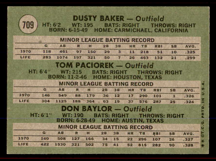 1971 Topps Baseball #709 Dusty Baker Don Baylor EX-MT 545969