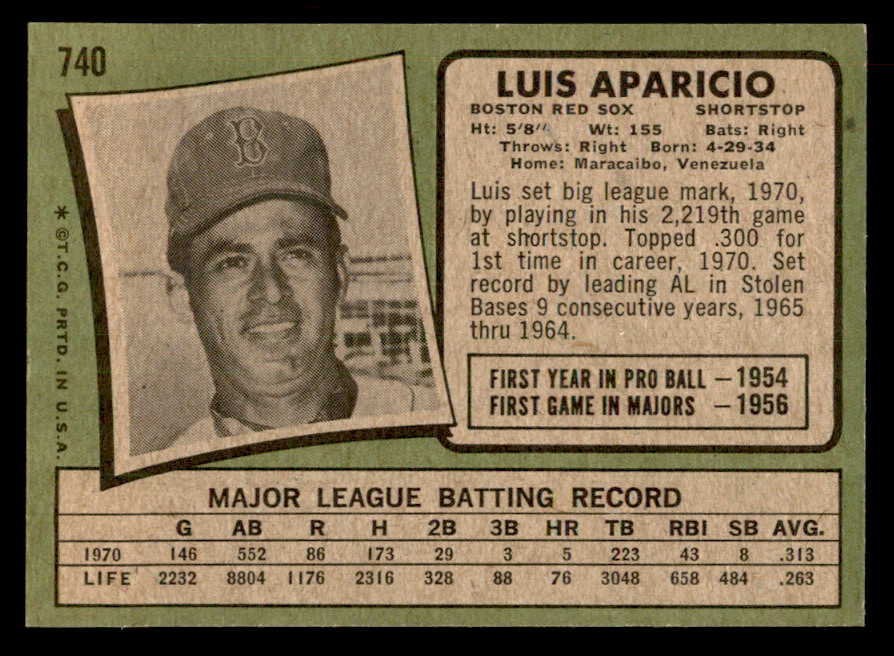 1971 Topps Baseball #740 Luis Aparicio Red Sox NR-MT 541653