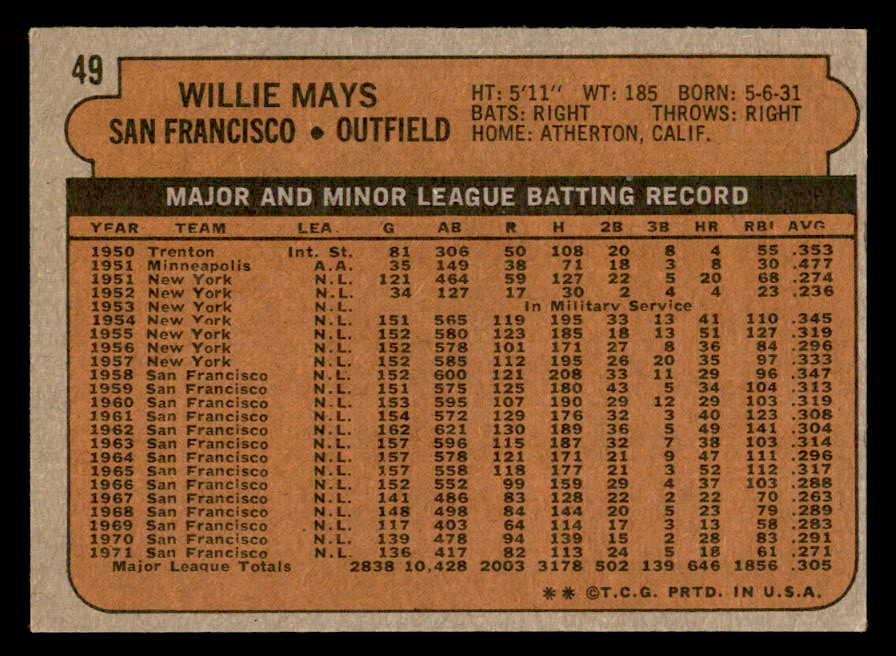 1972 Topps Baseball #049 Willie Mays Giants EX-MT 546274