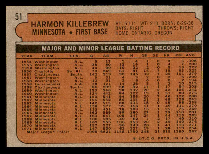 1972 Topps Baseball #051 Harmon Killebrew Twins EX-MT 544645
