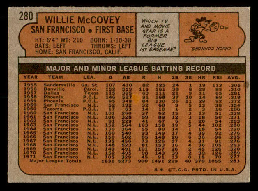 1972 Topps Baseball #280 Willie McCovey Giants EX 541501