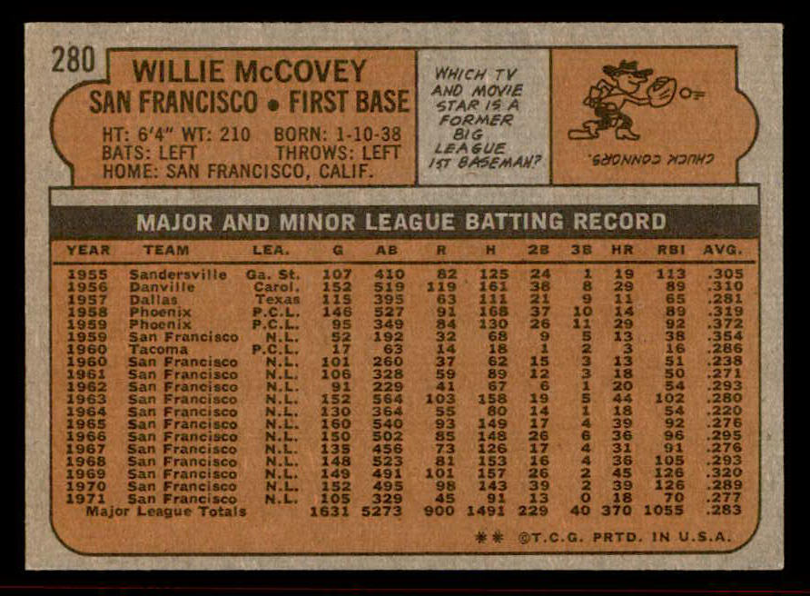 1972 Topps Baseball #280 Willie McCovey Giants EX-MT 542162