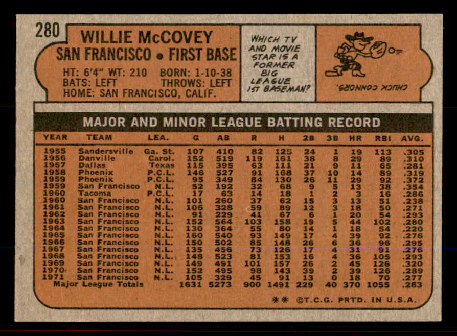 1972 Topps Baseball #280 Willie McCovey Giants NR-MT 545584
