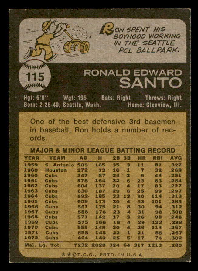 1973 Topps Baseball #115 Ron Santo Cubs EX-MT 545647