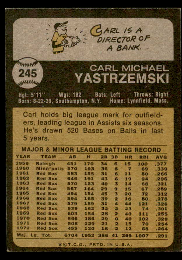 1973 Topps Baseball #245 Carl Yastrzemski Red Sox EX-MT 546036