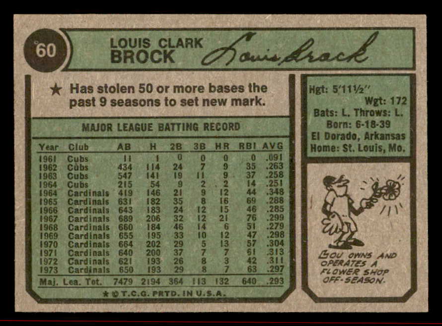 1974 Topps Baseball #060 Lou Brock Cardinals EX-MT 542069