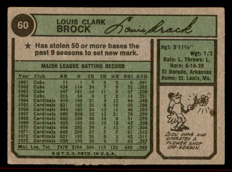 1974 Topps Baseball #060 Lou Brock Cardinals VG-EX 542068