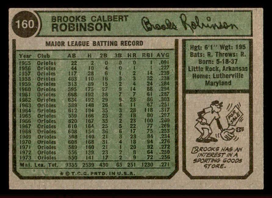 1974 Topps Baseball #160 Brooks Robinson Orioles EX-MT 542095