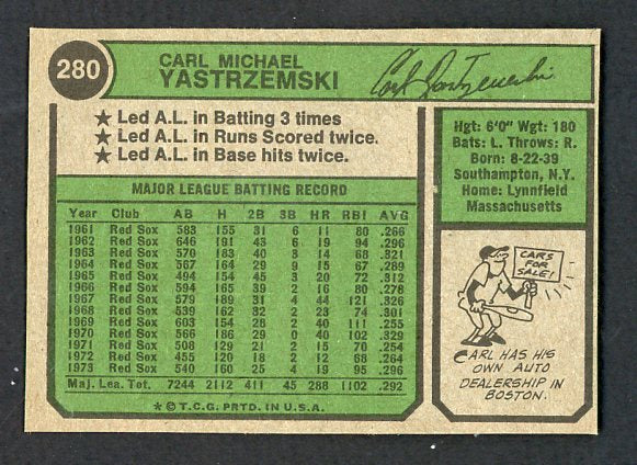 1974 Topps Baseball #280 Carl Yastrzemski Red Sox NR-MT 537708