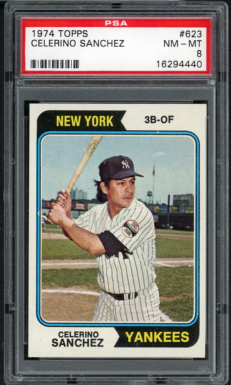 1974 Topps Baseball #623 Celerino Sanchez Yankees PSA 8 NM/MT 547424