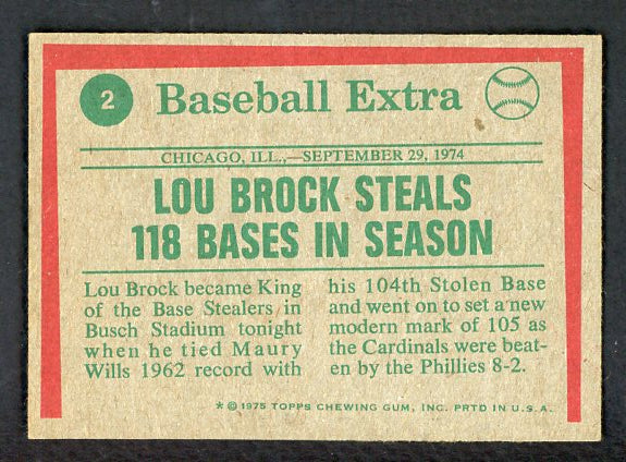 1975 Topps Baseball #002 Lou Brock HL Cardinals EX 542368
