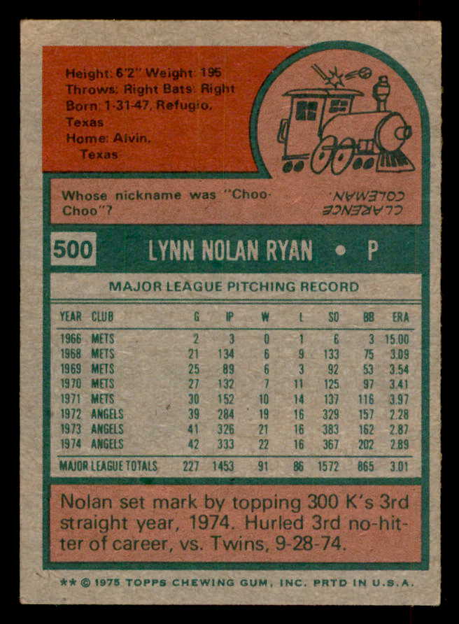 1975 Topps Baseball #500 Nolan Ryan Angels VG-EX 541571
