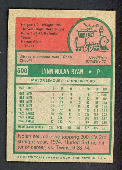 1975 Topps Baseball #500 Nolan Ryan Angles EX-MT 542364