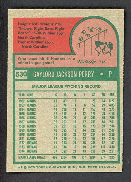 1975 Topps Baseball #530 Gaylord Perry Indians VG-EX 542332