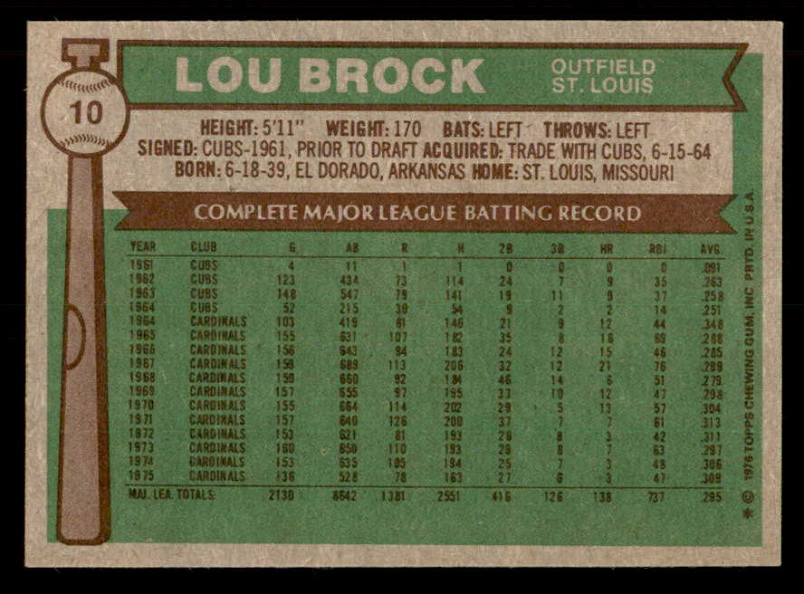 1976 Topps Baseball #010 Lou Brock Cardinals NR-MT 541596