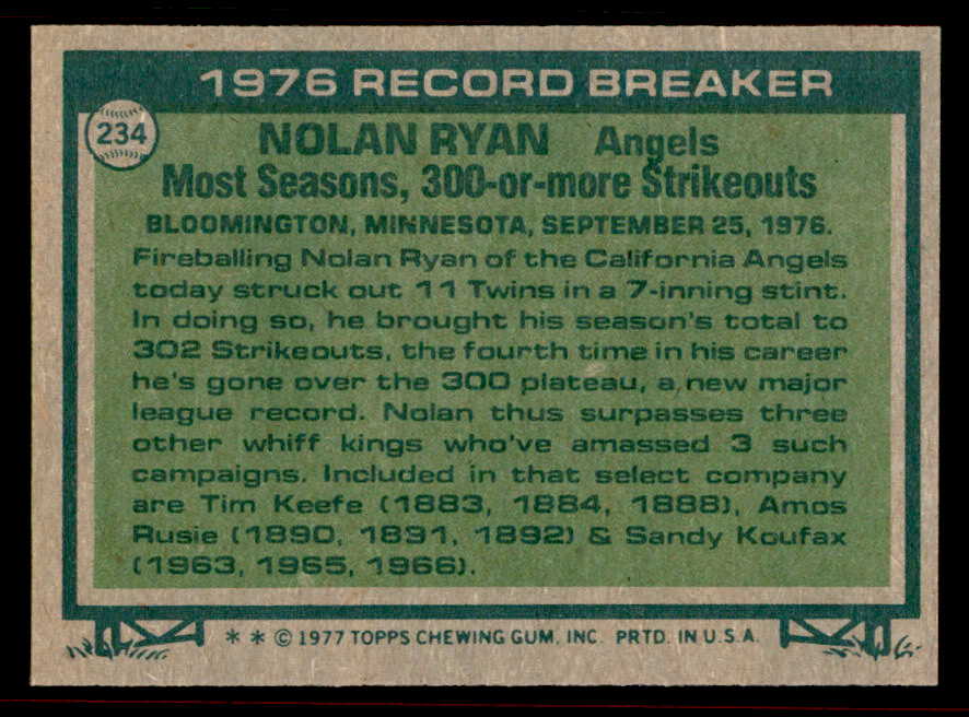 1977 Topps Baseball #234 Nolan Ryan RB Angels EX-MT 542230
