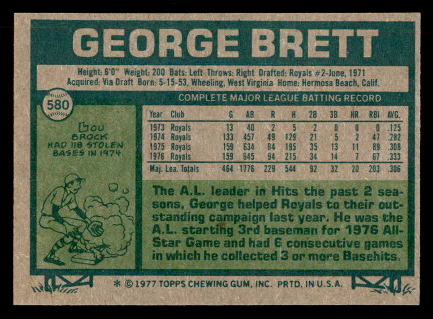1977 Topps Baseball #580 George Brett Royals EX-MT 541603