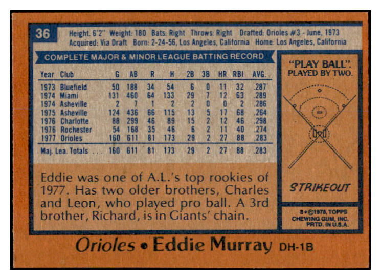 1978 Topps Baseball #036 Eddie Murray Orioles EX 536353
