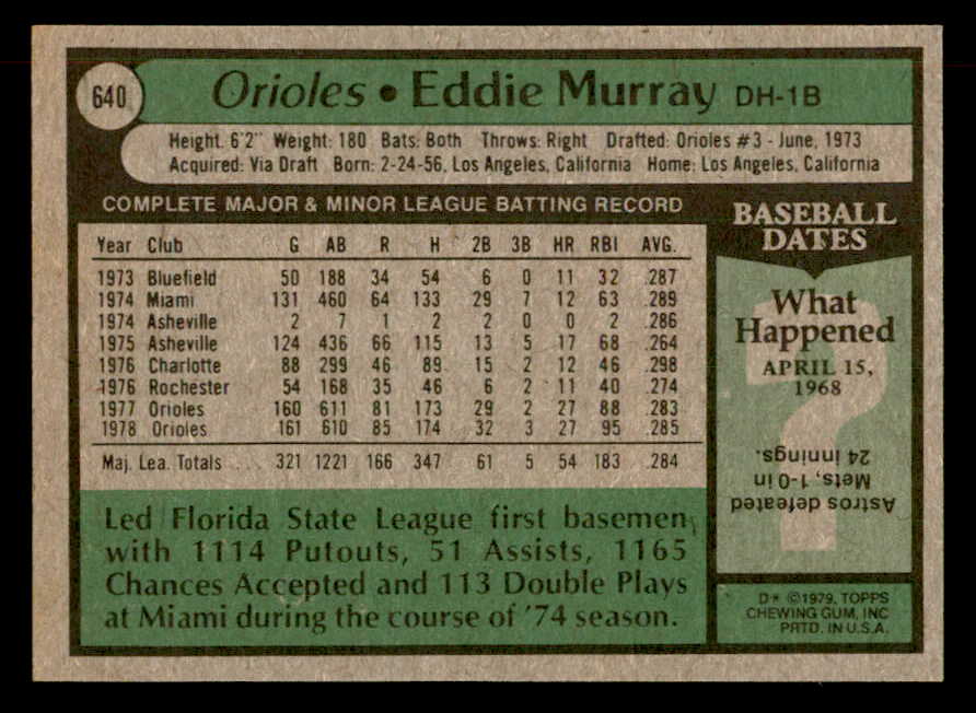 1979 Topps Baseball #640 Eddie Murray Orioles EX-MT 541630