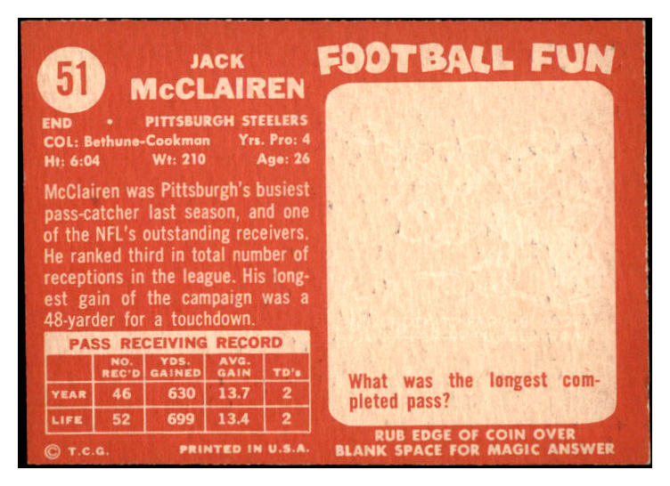 1958 Topps Football #051 Jack McClairen Steelers NR-MT 529480