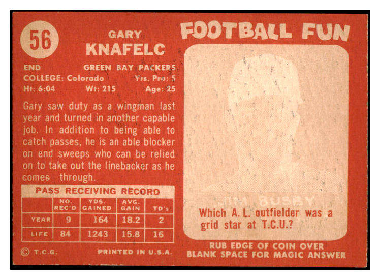 1958 Topps Football #056 Gary Knafelc Packers NR-MT 529484