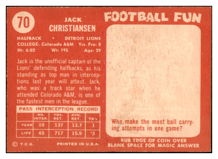1958 Topps Football #070 Jack Christiansen Lions NR-MT 529493