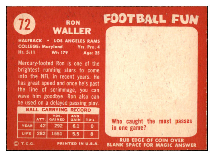 1958 Topps Football #072 Ron Waller Rams NR-MT 529494