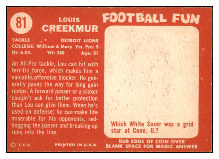 1958 Topps Football #081 Lou Creekmur Lions NR-MT 529501