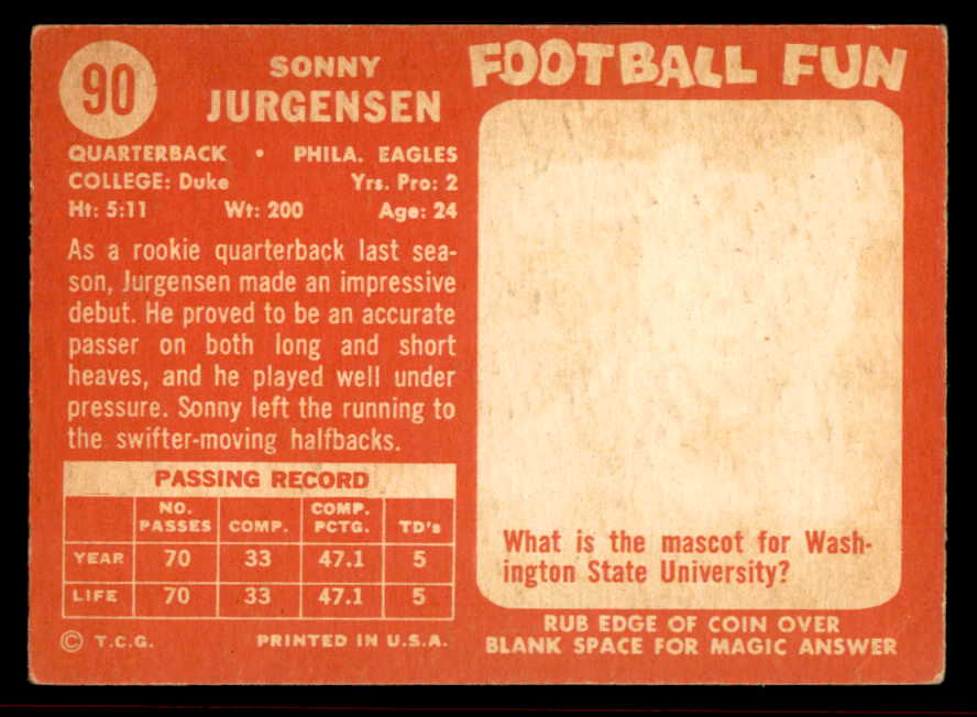 1958 Topps Football #090 Sonny Jurgensen Eagles VG-EX 542063