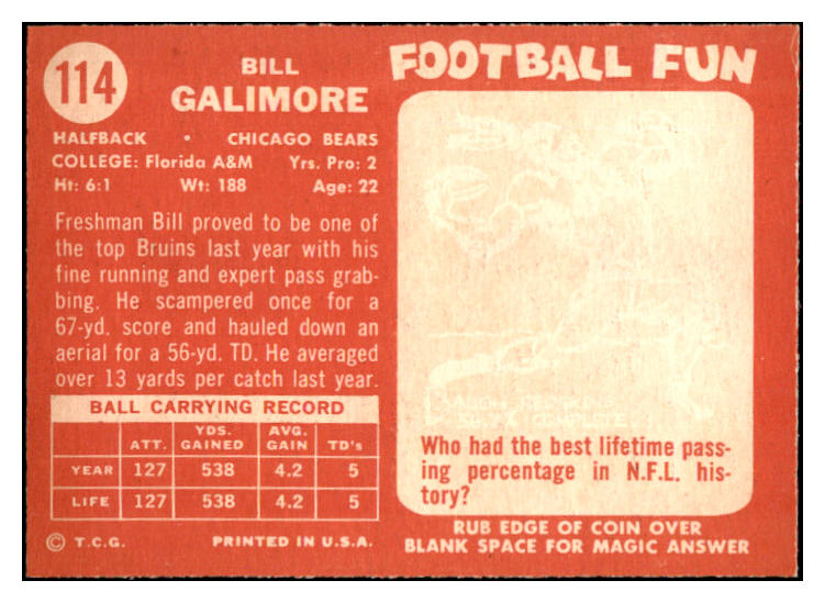 1958 Topps Football #114 Willie Galimore Bears NR-MT 529522