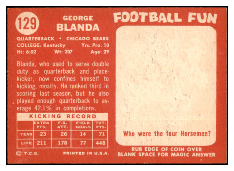 1958 Topps Football #129 George Blanda Bears EX-MT 529531